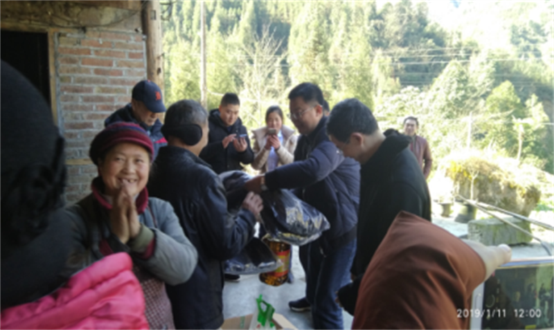 1月10日、11日,公司班子一行通過(guò)集中發(fā)放慰問(wèn)品和走訪慰問(wèn)貧困戶代表的方式,先后對(duì)名山區(qū)車嶺鎮(zhèn)石堰村、蘆山縣大川鎮(zhèn)快樂(lè)村開展慰問(wèn),為兩個(gè)村的159戶建檔立卡貧困戶、貧困老黨員們送上了大米、清油、面粉、掛面、愛(ài)心棉衣等慰問(wèn)物品,將愛(ài)心傳達(dá)給每一位困難群眾的同時(shí),每到一處,公司領(lǐng)導(dǎo)們都耐心細(xì)致的和貧困戶促膝交談,關(guān)心其家庭和收入情況,詳細(xì)了解其脫貧情況,并介紹國(guó)家扶貧政策、傳達(dá)黨委政府對(duì)每戶貧困戶的關(guān)心和掛念,引導(dǎo)貧困戶既要感恩黨和政府,又要學(xué)會(huì)自力更生,鼓勵(lì)他們一定要樹立樂(lè)觀健康心態(tài),克服困難,用勤勞的雙手早日致富奔康。