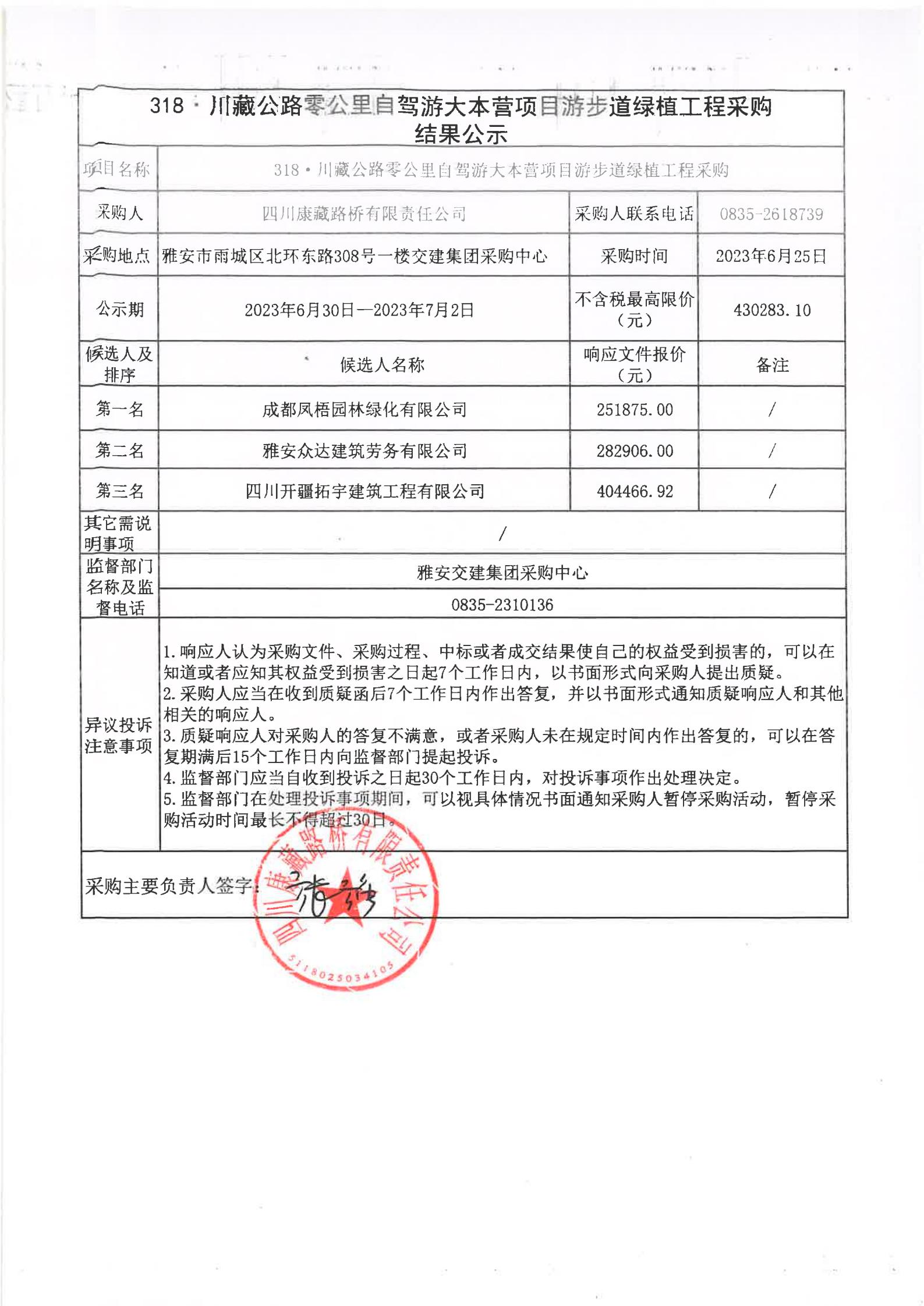四川康藏路橋有限責任公司318·川藏公路零公里自駕游大本營項目游步道綠植工程采購結果公示