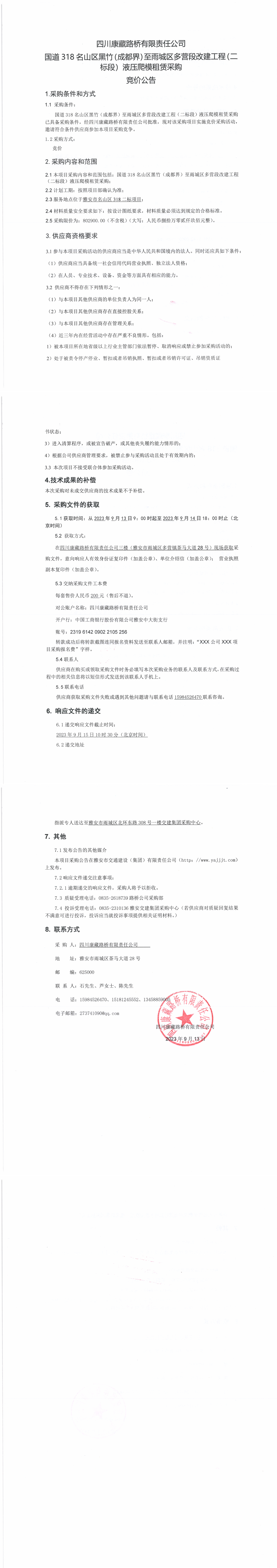 四川康藏路橋有限責(zé)任公司國道318名山區(qū)黑竹(成都界)至雨城區(qū)多營段改建工程(二標(biāo)段)液壓爬模租賃采購競價公告